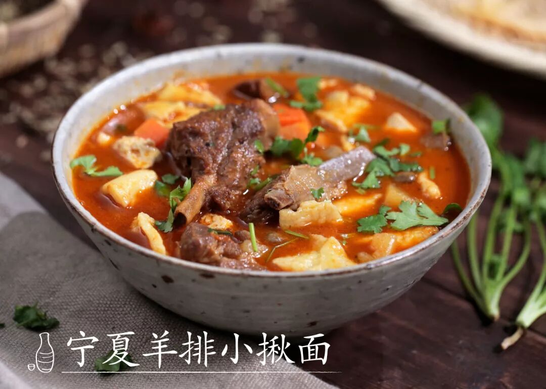 宁夏 宁夏面食花样繁多,最常见的便是这碗小揪面。汤底浓香,羊排酥软,直接揪成的面片则嚼劲十足,一碗香辣,荤素管饱。
