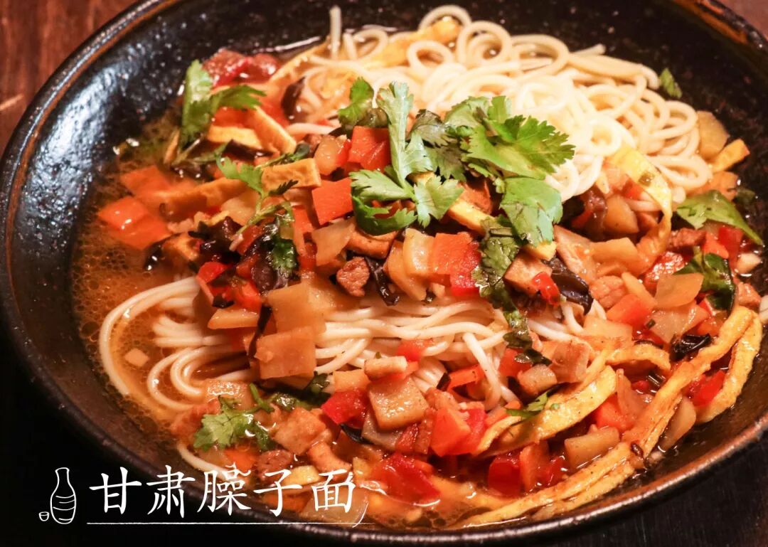 甘肃 北方很流行的臊子面,到了甘肃更为讲究,小小一碗面,浇头要用到近十种食材配高汤炖煮,吃时嘶溜嘶溜,自在又美味。