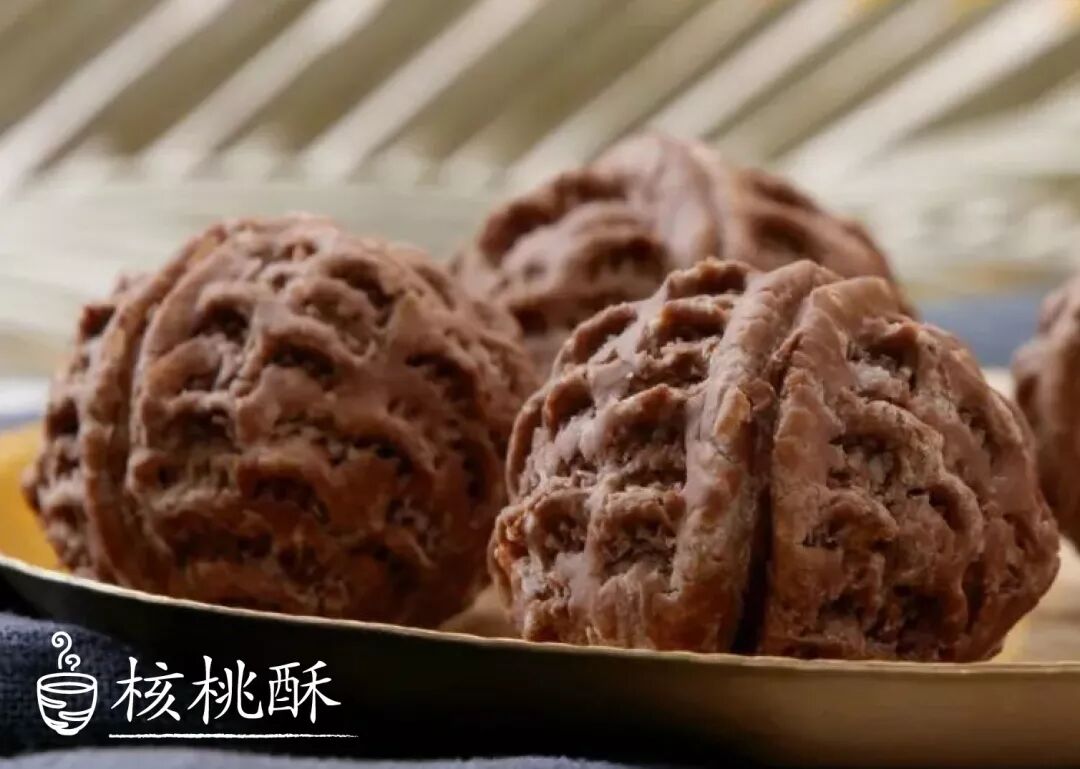 核桃酥是传统老北京“京八件”之一,内馅香醇,外皮有细致精巧的纹路,几乎难辨真假。