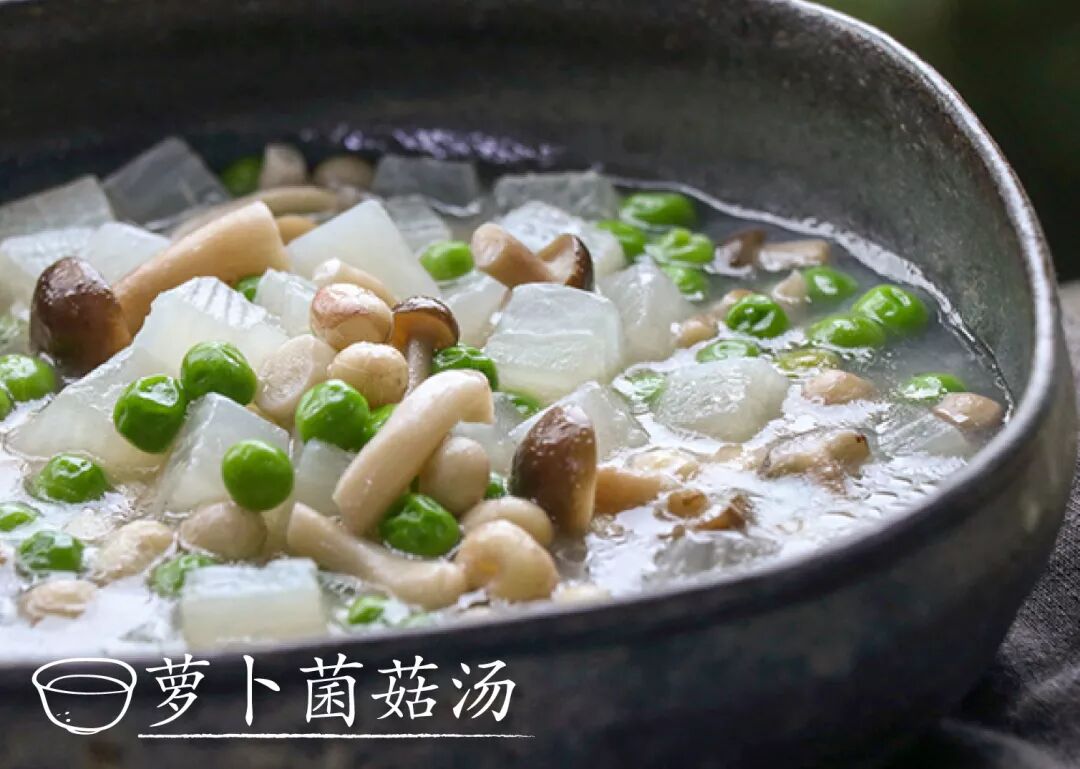 萝卜配菌菇高汤,清爽养生吃法