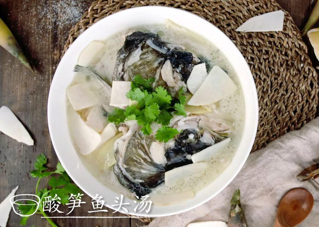 醋泡的夏笋入汤,与略煎过的鱼头同煮,酸爽可口、开胃消暑,是不可错过的时令美味。
