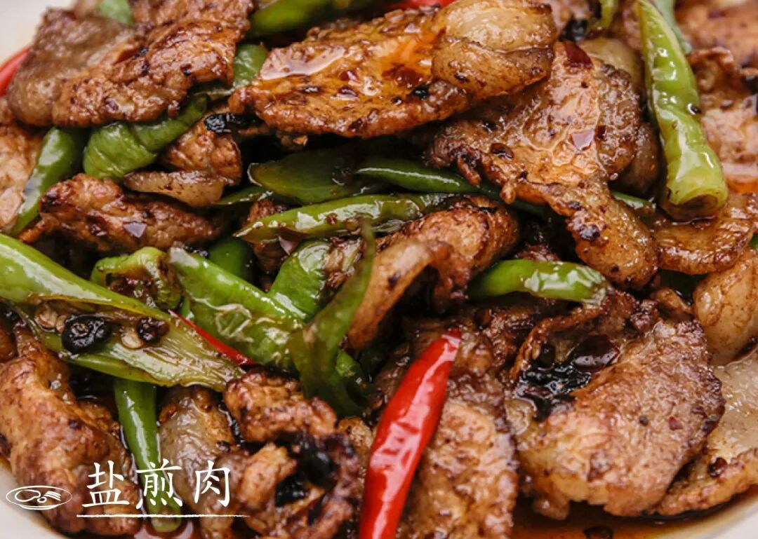作为回锅肉是姐妹菜,盐煎肉的烹制无需放盐,只用豆瓣酱、豆豉调味,干香四溢,开胃下饭。
