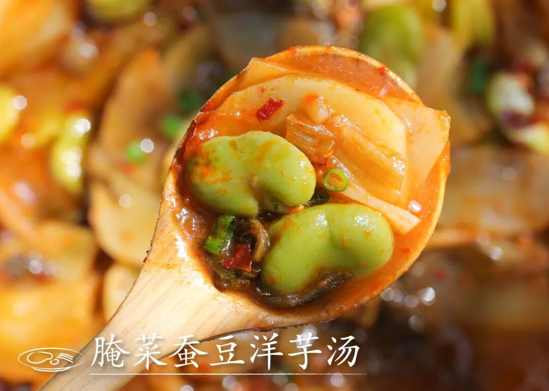 洋芋除了焖饭,煮汤也很美味,同样加上蚕豆,调以酸辣味,格外开胃!
