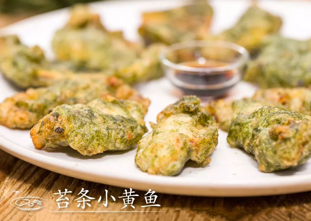 常见海产小黄鱼,可以试试传统宁波做法,加苔条挂糊炸,滑嫩又多汁。