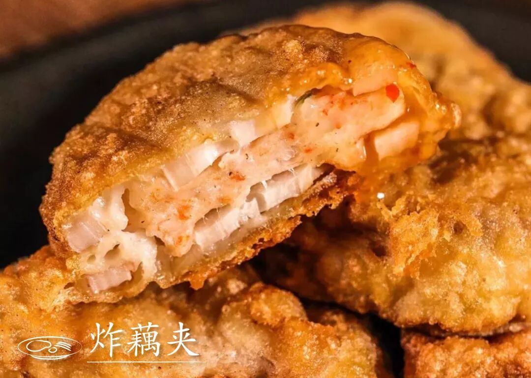 这一款炸藕夹也选用了两种馅料,豆腐肉馅鲜嫩多汁,虾肉馅鲜美弹牙,酥香爽脆。