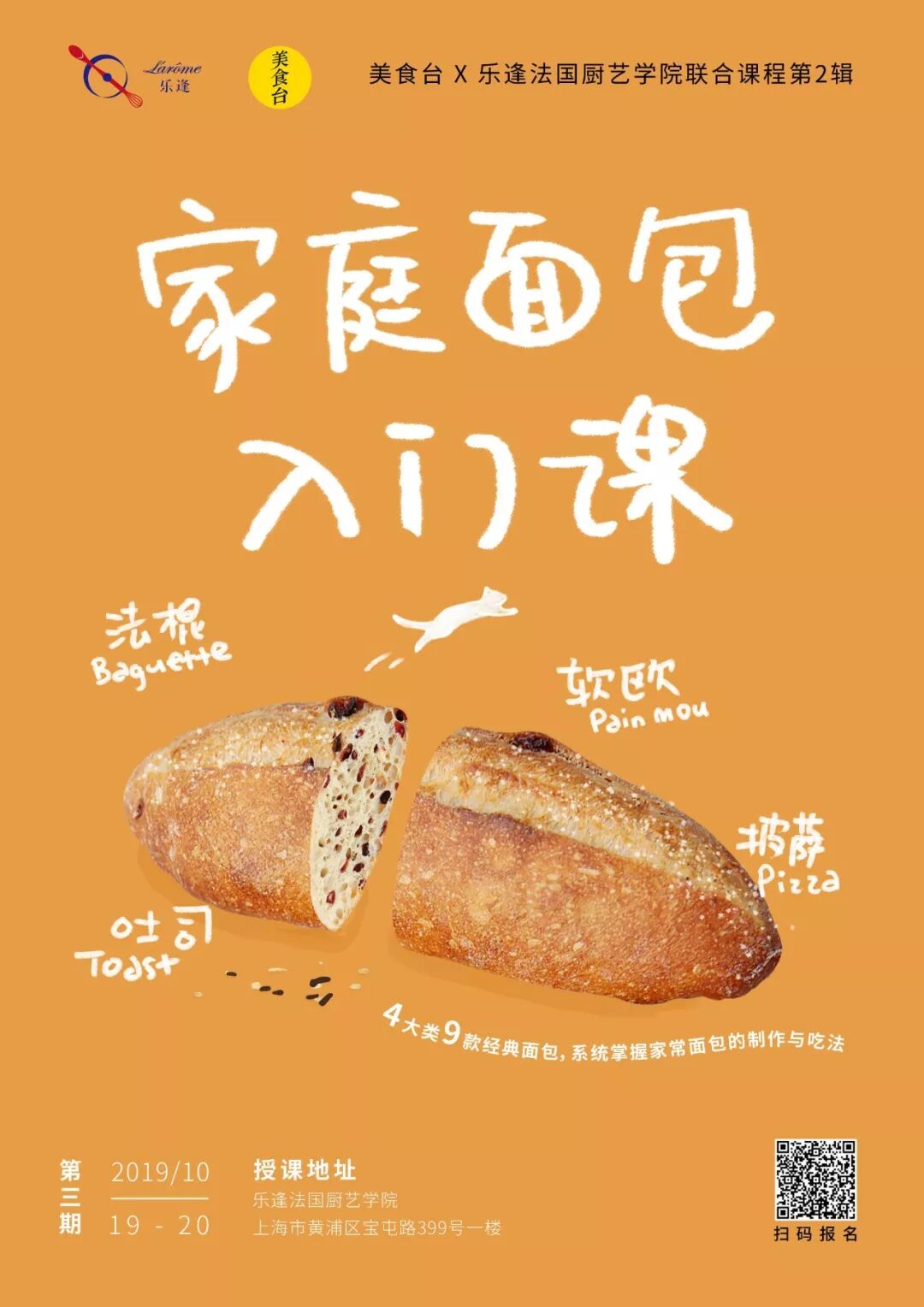 由美食台和乐逢法国厨艺学院联合推出的《家庭面包入门课》又开课啦!专门为零基础的面包爱好者设计,世界顶级法籍面包师现场手把手教学,全程实操,仅需2天时间。长按上方海报扫码或点击阅读原文,即可报名!* 课程详细安排,可咨询本期课程顾问小乐(电话/微信 : 18616807448)