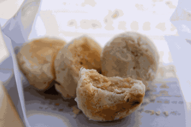 石狮老街金辉煎粿的出品,是口感最像麻团的一款。内里中空,外皮薄脆,味道是泉州人迷之爱好的半甜咸,不油不腻,实在好吃。