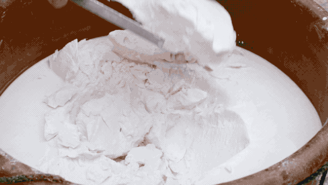 王川有纯花生汤、加蛋、加芋头3种选项,不同于大多数店家小锅加热花生汤,再往里边加蛋的做法,王吉的方式比较特别:老板娘取碗打鸡蛋,大力搅散制造空气感,然后用茶缸快速浇下滚烫的花生汤,蛋花便轻盈蓬松地浮了起来。