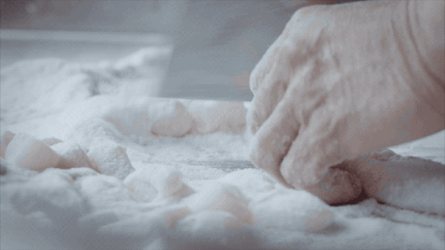 ▲手工水洗的粗颗粒地瓜淀粉