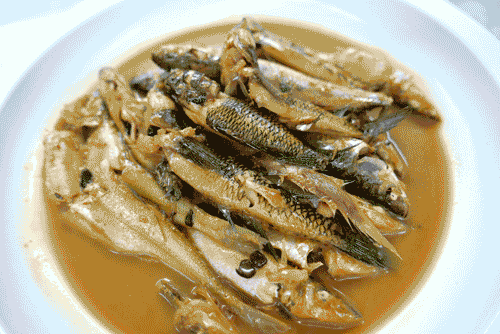 王吉的炣杂鱼也很特色,当天拼配是带鱼、红娘和肉鲳。酱油水里不仅有豆豉、酱瓜,还吃出了古龙罐头的肉粒,这一味料可是很多家庭主妇炣肉炣鱼偷懒又好吃的小撇步(诀窍)!