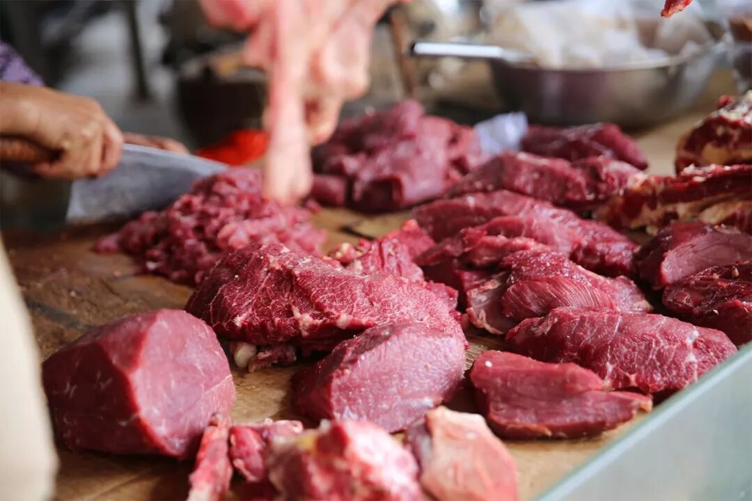 ▲菜场牛肉摊