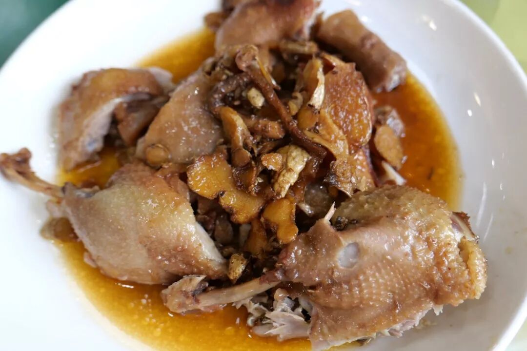 二十年老店忠记盐烧鸭主打盐烧,炭火控温,先以铁锅盐焗入味,再上灶子慢炖酥香,可能当天食运不佳、火候未到,我们吃到的盐烧鸭在酥烂和入味上都有些偏差。还好有老饕指路去阿山姜母鸭,姜味浓郁,番鸭酥烂,颇为惊喜。