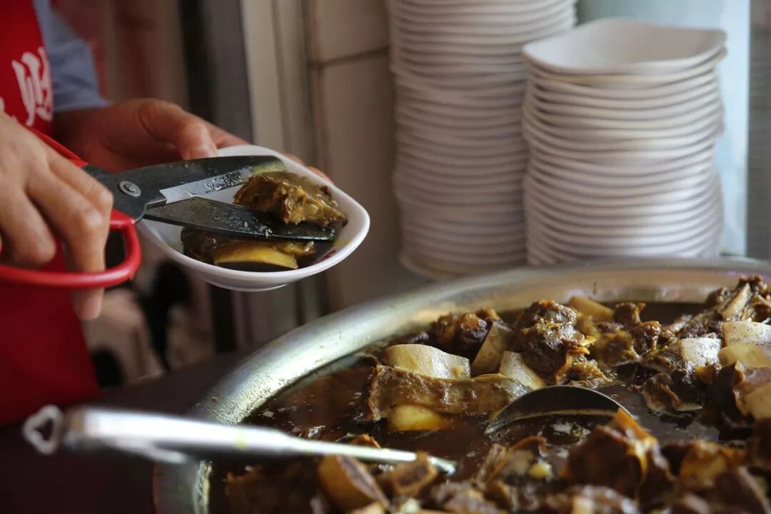 进了馆子,只要胃口够大,吃遍牛肉全身轻而易举。一碗咸饭、一份牛肉汤或牛肉羹,再来一支牛排,这是一人食的标配三件套。闽式牛排虽和想象的样子大相径庭,但据说正是从南洋的西式做法中汲取灵感,黄牛肋排加咖喱、大料、辣椒等焖炖酥软,乡土外表下也有洋气味道。