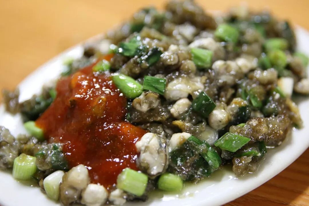 另一道极具代表的小吃,土笋冻,同样取材自大海。海星虫,又叫泥丁、海土笋,学名可口革囊星虫,形似沙虫、蚯蚓。第一次吃到的人有可能谈“虫”色变,但对于泉州人,特别是晋江安海人来说,它就是“可口”的存在。