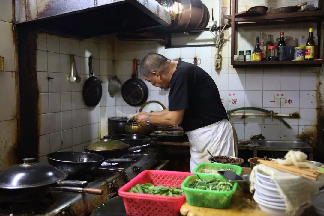 水门国仔是经常被翻牌的老店之一,他们家是骨汤派,坚持用梭子蟹来吊鲜,汤底清甜,鲜味浓郁。醋肉、卤大肠,再来一根油条蘸汤汁,是很多在地人雷打不动的固定搭配。