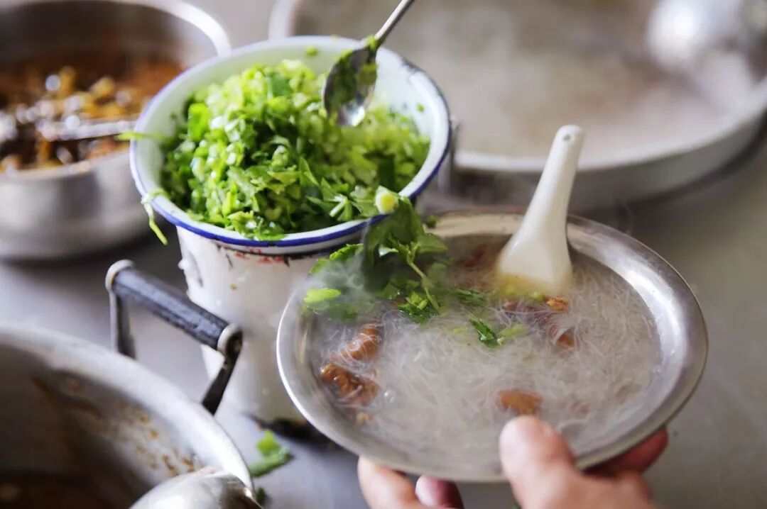 早市的调味较为清淡,通常是一把葱花、少许白胡椒粉,几滴当归、黄芪浸泡的高度酒。到了夜宵时段,饮酒夜归、饥肠辘辘的麻龟(酒鬼)众多,应运而生的流动摊头更偏好重口味。
