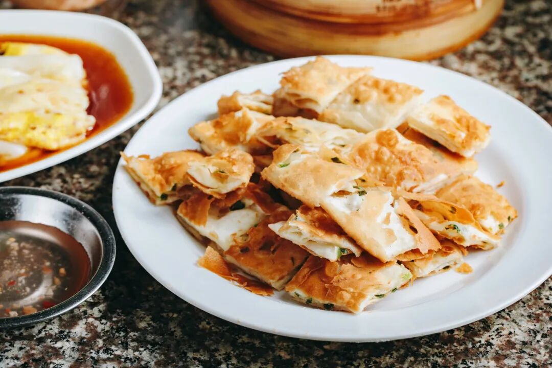 烙饼也是必点的,擀得薄薄的面饼下锅大火油炸,捞出来趁热切成菱形的小块,吃的时候蘸上红醋。酥脆酸甜的烙饼混着小麦的香气,一同在嘴里绽放。
