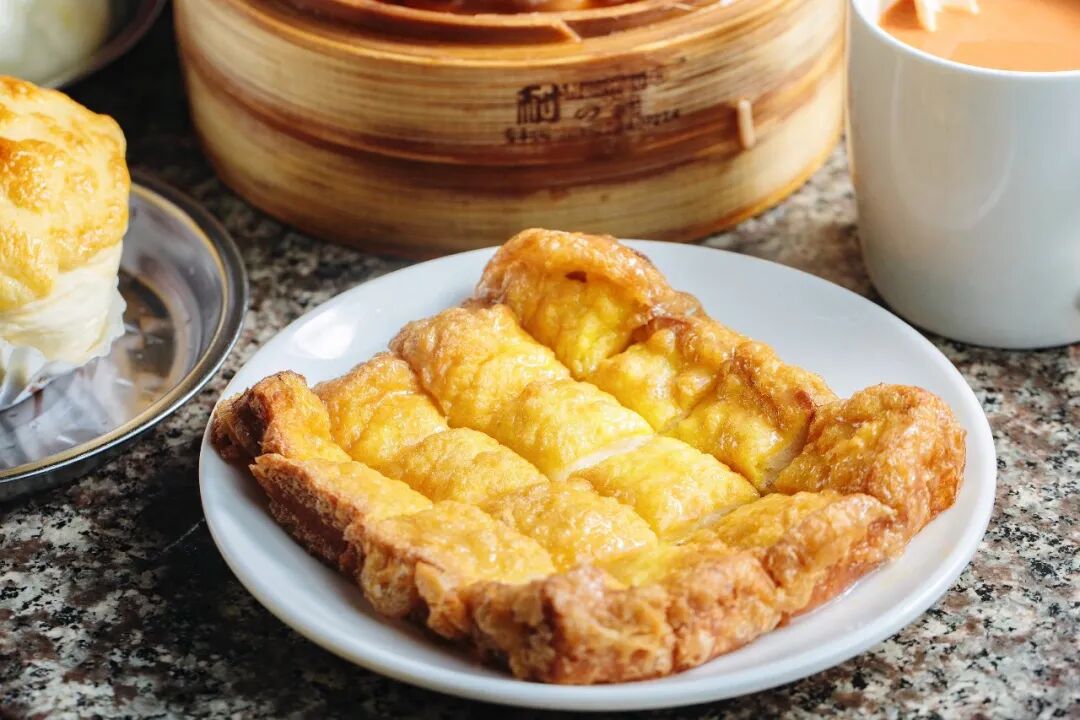 西多士裹足蛋液后炸至金黄,涂上炼乳后切成小块,浓郁的蛋奶香让人欲罢不能。