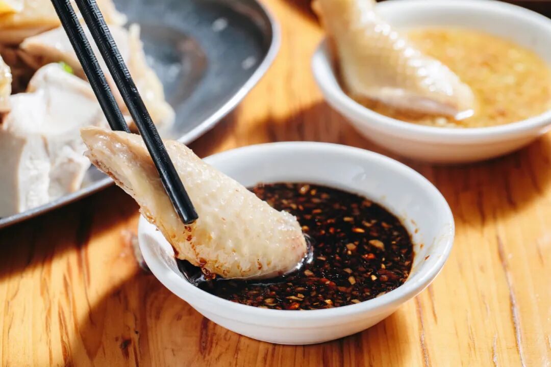 吃文昌鸡有两种选择:生抽和小米辣的组合,口感偏咸;沙姜、蒜泥、白糖和小橘子的组合,小清新十足,两种风味各异。