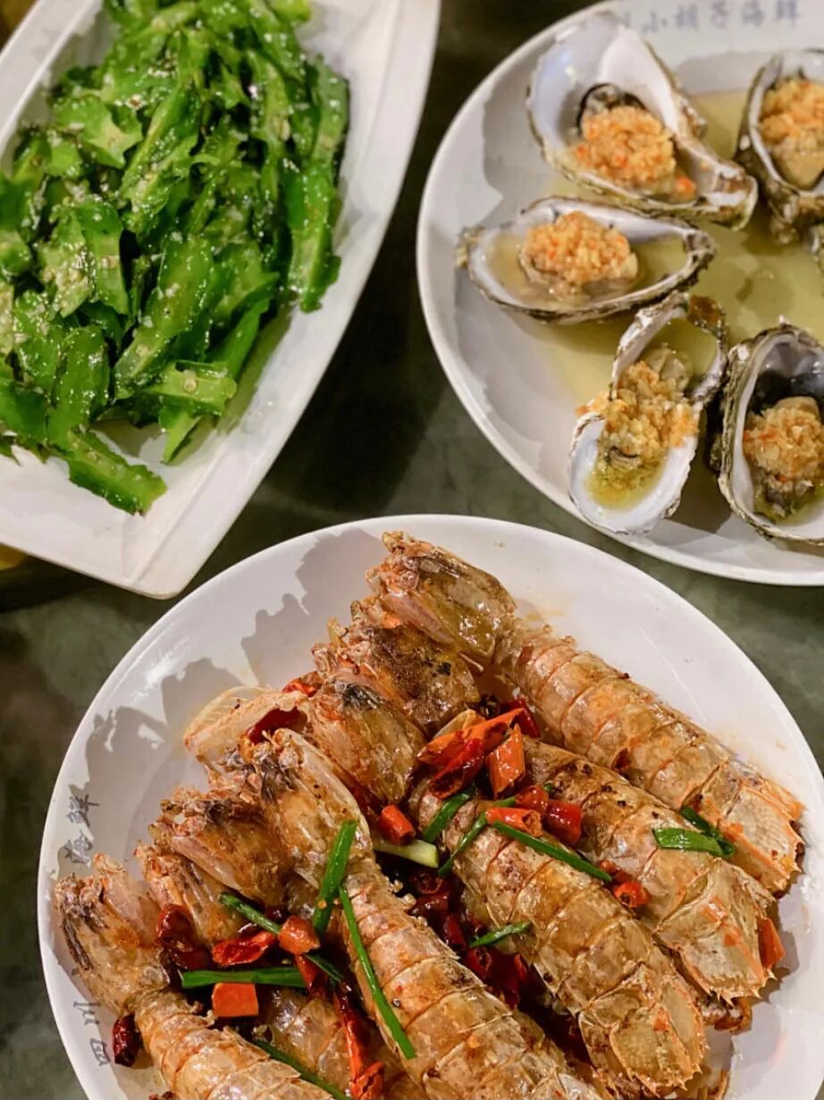 点评上有个2到4人的团购餐,囊括了石斑鱼、椒盐虾、炸沙丁鱼、葱炒指甲螺、蒜蓉蒸生蚝、清炒时蔬,整一桌才188,人均90元完美实现海鲜自由,和三亚那些宰游客的店相比,良心多了。