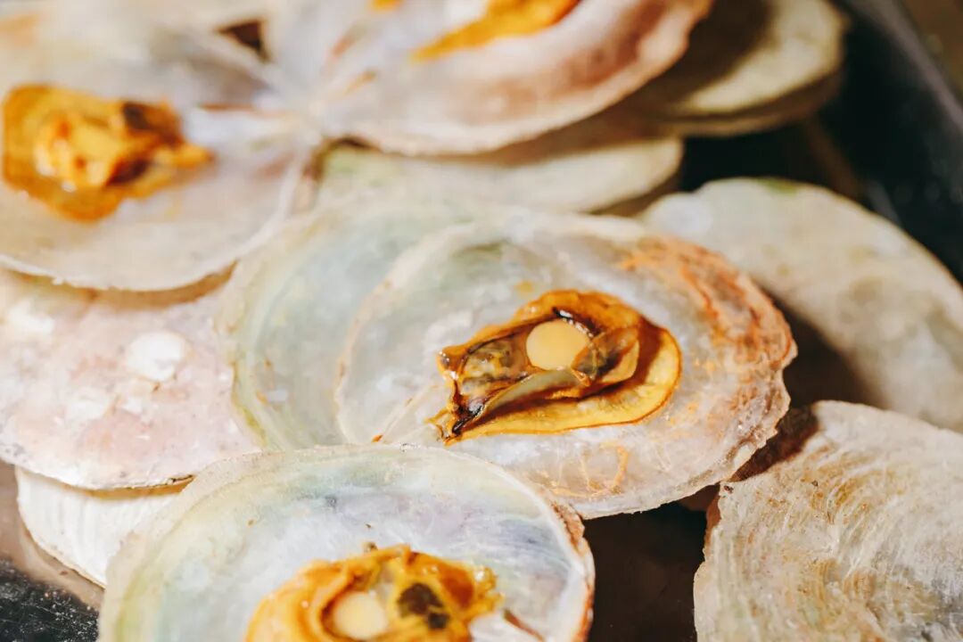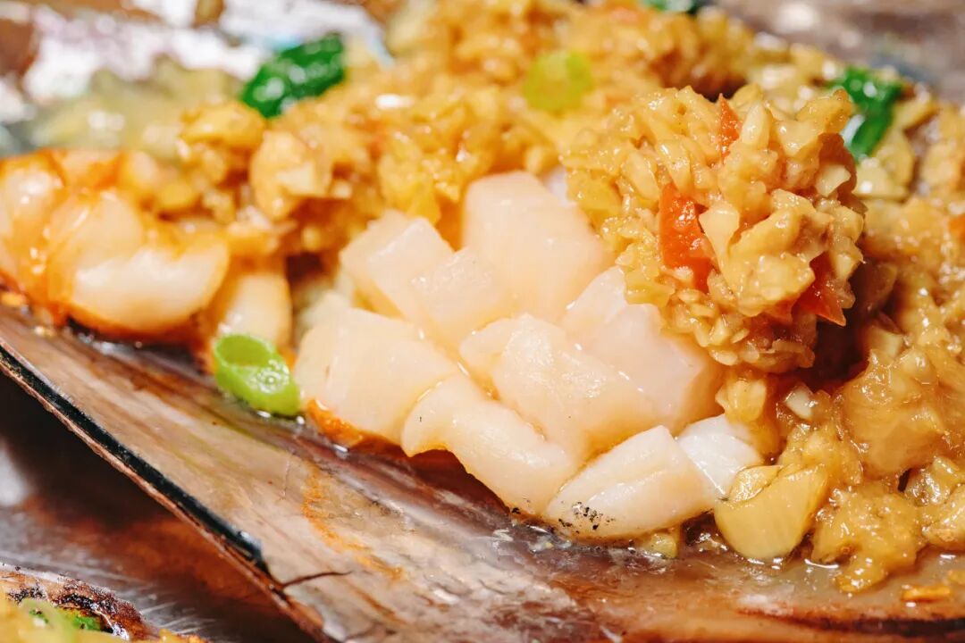 夜宵摊上的烤海鲜同样诱人,在街头支起几张烤架,炭火的突袭下,肥美的湛江生蚝慢慢熟透,不需要蒜蓉的“浓墨重彩”,配上芥末酱油即可。