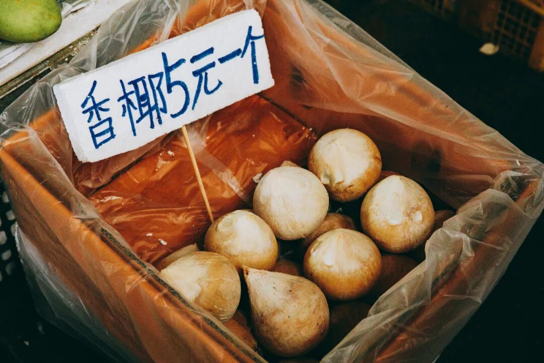 椰子是最常见的水果。其中我们最推荐香椰,5元一个,奶味特别浓郁,里面的椰肉更是宝藏,不需多费力就能轻易刮下,香甜滑嫩。