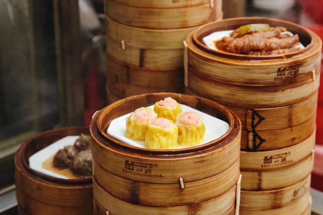 下午三四点是喝老爸茶的高峰时段,小店旁边停满了电瓶车,店里乌泱泱的全是人。现烤的面包火热出炉,一摞摞叠得高高的蒸屉里装满了蒸点,再来一壶菊普,谈天说地,好不快活。