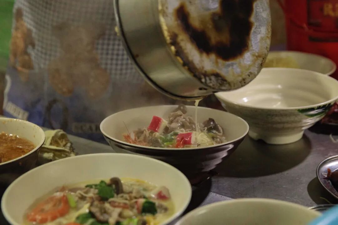 入了夜的海口又是另外一番模样。凌晨一两点,烧烤摊前人头攒动;刚喝完酒的人一头扎进了炖品店;来焖面店里打包和堂吃的人也络绎不绝。