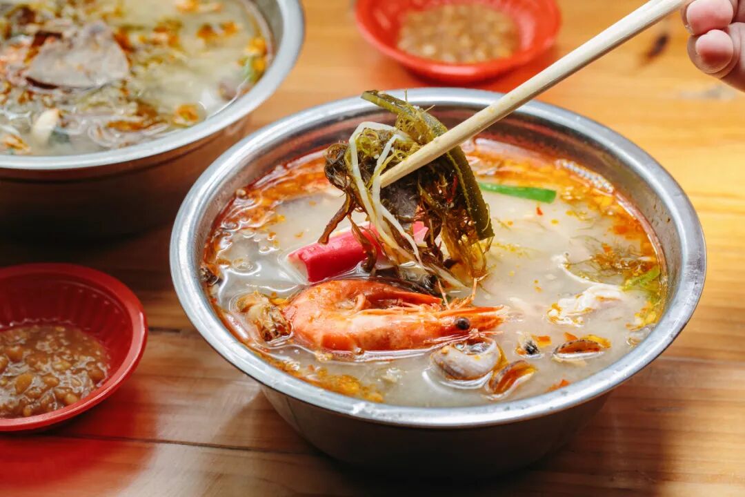 来海口之前,最好奇和最抗拒的都是糟粕醋,没想到吃完之后真香了!它是民间酿酒过程中所得,酿酒时产生的酒糟发生的酸醋作为汤料,加上蔬菜、海菜和海鲜,酸酸辣辣,特别开胃。