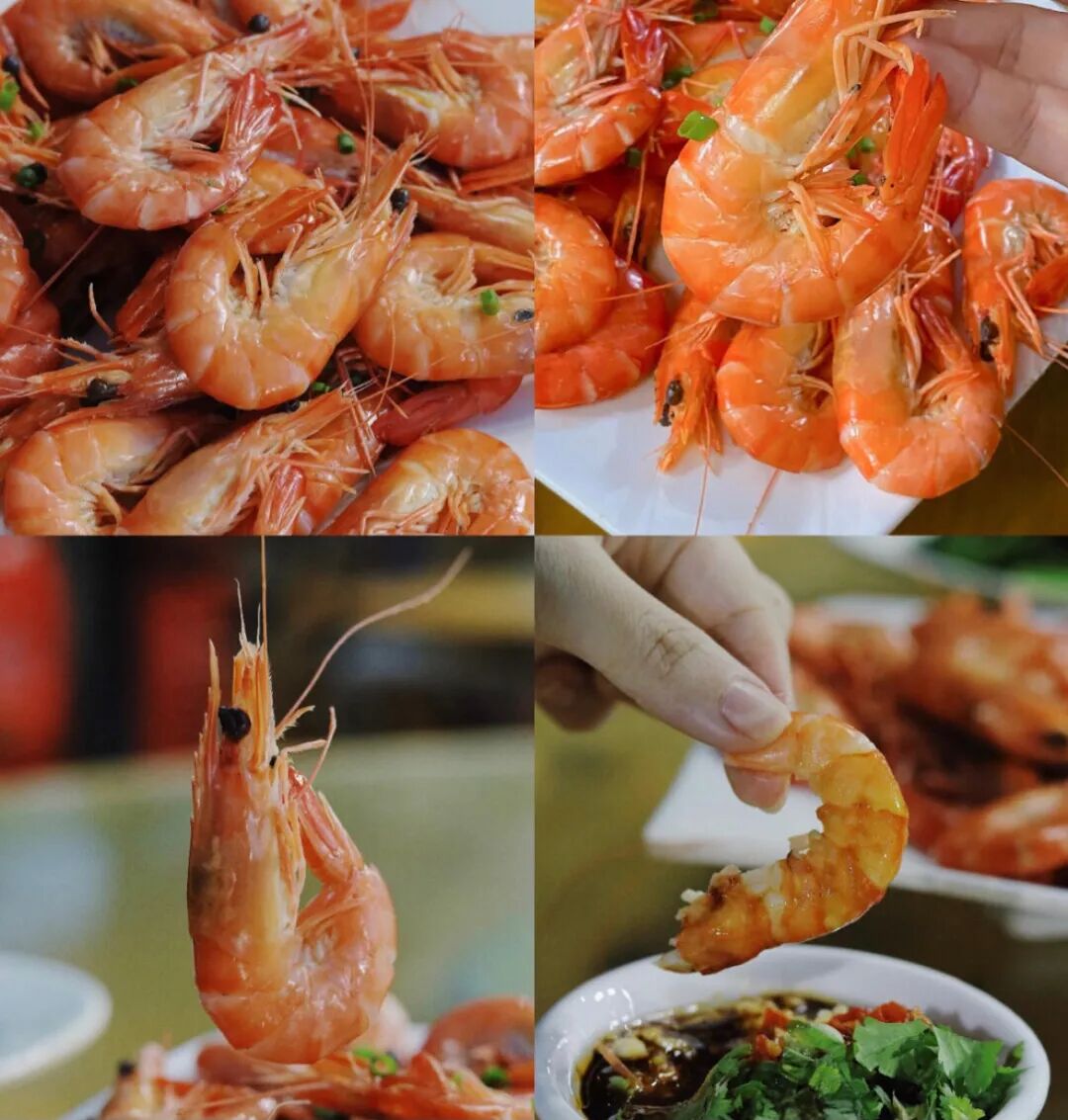 新鲜的大虾白灼过水就能吃,Q弹的肉质仿佛在舌尖跳舞,蘸上特色揾碟, 鲜味呼之欲出。