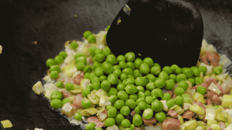 调味很简单,只需要加少许盐即可,甜糯的豌豆、脆爽的笋丁,再配上咸鲜的咸肉,一口下去充满满足感。