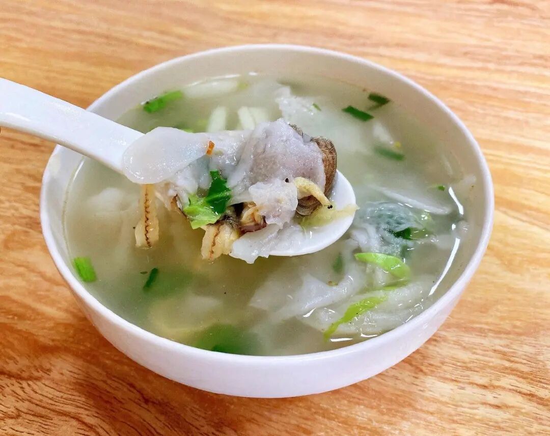 煮好的鼎边糊冒着浓浓的热气,口感薄润滑嫩、鲜香清甜,汤清不糊。