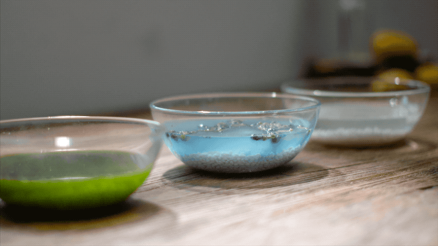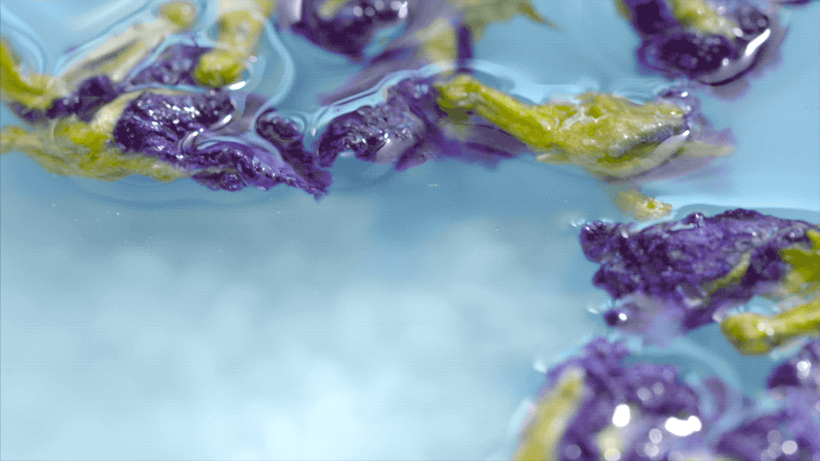 蓝色的更为亮眼,100克糯米中加入2克蝶豆花和300克水,也是浸泡3-5小时。![]()