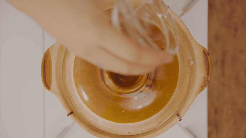 把鱼骨汤保留,我们一会儿用它来焖饭。