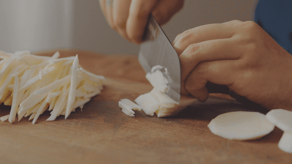 茭白鲜甜脆嫩,焖入饭中口感更佳。泡带鱼的空当,我们把茭白切丝,焯熟备用。