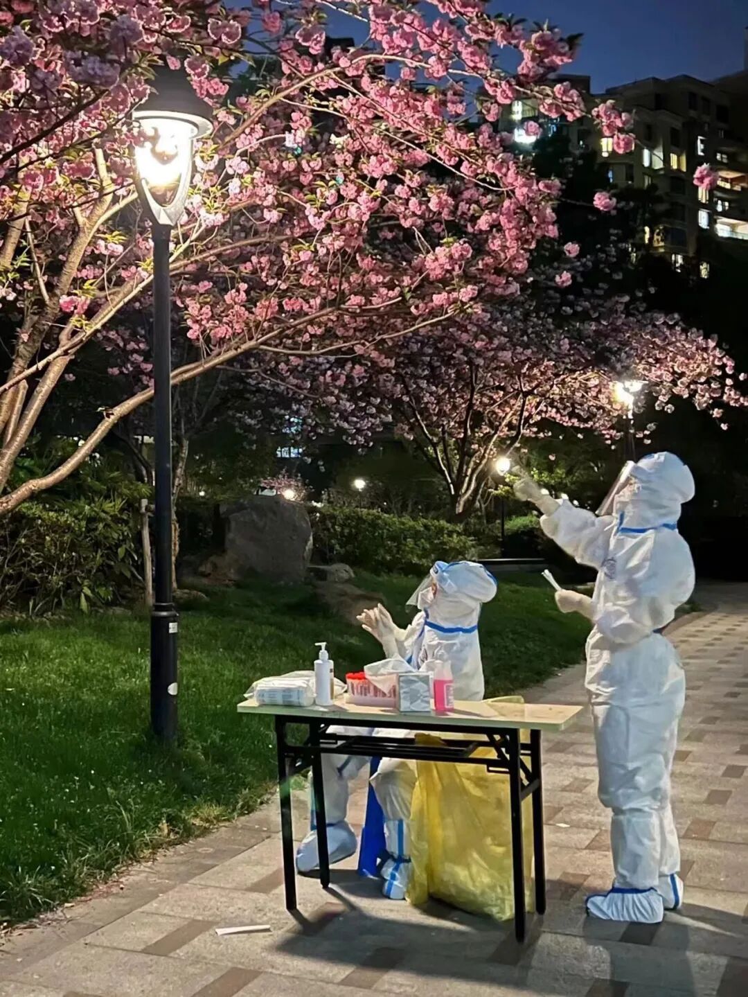 浦东新区上海绿城,深夜,樱花开了,停下来一会会