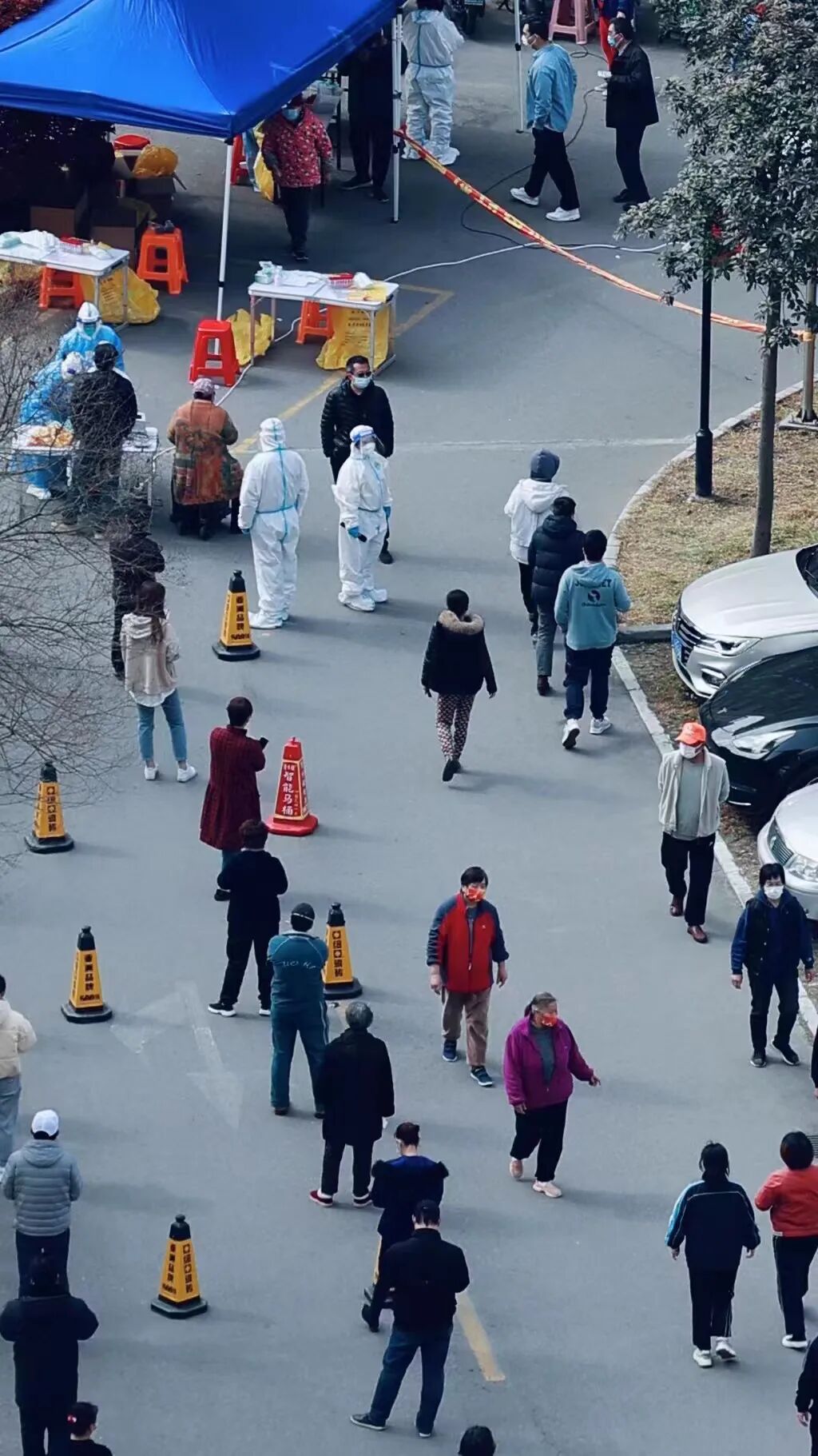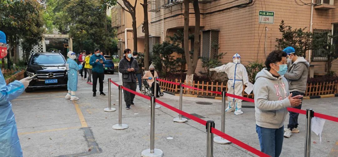小区的核酸检测在中心花园进行,实行跳号原则,保证每一栋楼进出时,绝对不会碰到,避免可能存在的交叉感染。