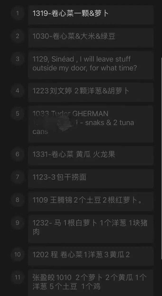 在小林看来,基层的防疫,特别需要专业知识培训和经验互助,但“不可能所有人都念过医科大学”,这就需要更多“在身边”的专业人士参与其间。在等来解封之前,她希望整个小区,能保持一个平稳的过渡。卡尔文同样住在徐汇的一个老小区。她是90后,本职工作是戏剧制作人,日常管理20-30人的剧组,多的时候有50-60人。目前她身兼光明牛奶团、面包培根团、清美蔬菜团、夫妻肺片和百味鸡团的团长。朋友戏称:“一个戏剧制作人去当团长,是再合适不过的了。”工作中锻炼的统筹和沟通能力,反哺了她的团长生涯。![]()