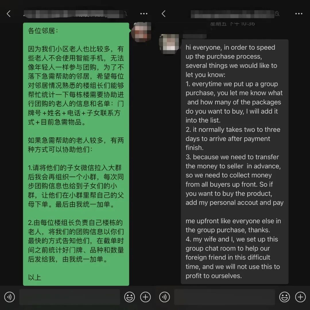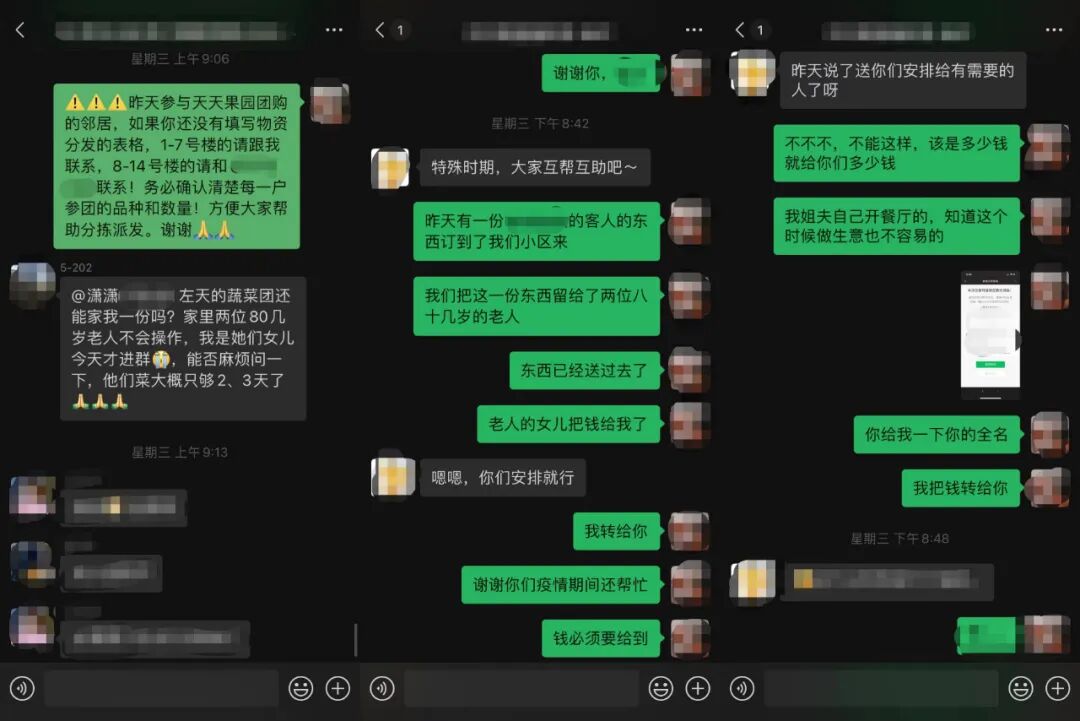 经历了这件事,她们团购队开始对老人、外国友人等不太擅长使用微信的居民,单独建立帮助机制,确保他们也能及时得到物资。对外,她们则组建了团长群,把各个社区的团长拢在一起,资源互换。