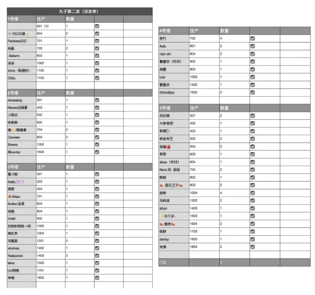 她们同样将小区划分成了两个片区,这样5人各司其职,保证团购整个流程顺利推进,也能避免可能发生的交叉感染。