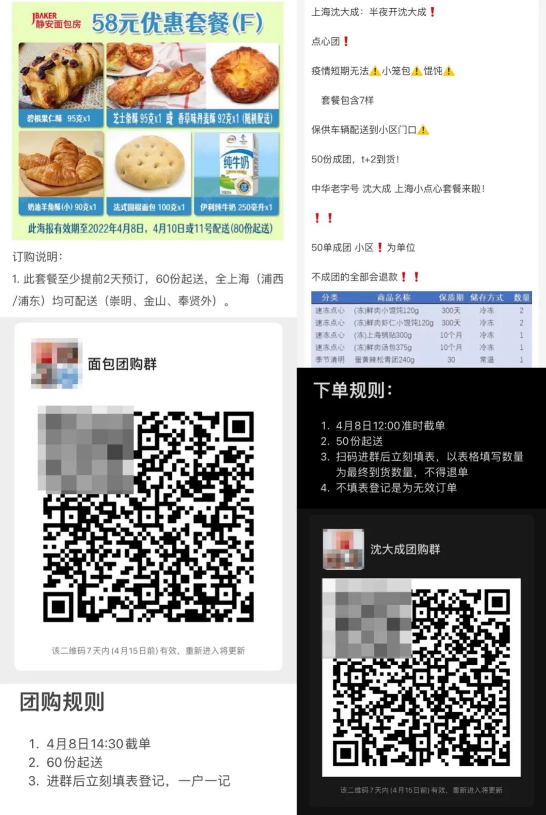 她每笔团购都会单独建一个群,然后截取供应商物料中的图片,加上团购规则以及进群二维码,做成海报,发到大群里供需要的人入群。团购结束后这个小群就立刻解散,做到一单一结。