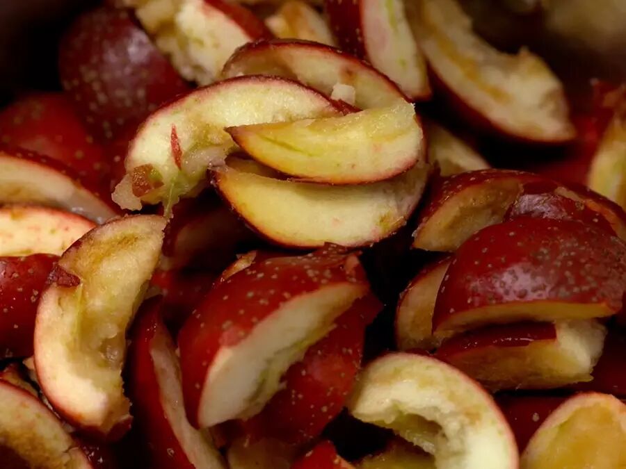 山楂洗净,去核去蒂,切成小块,放入锅中。