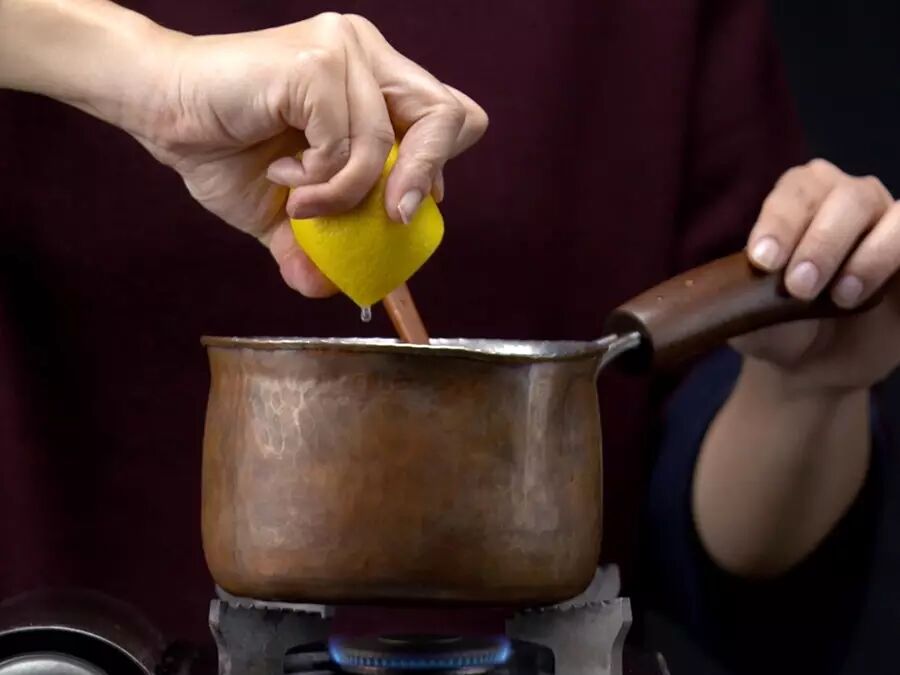直到汁水收干,呈黏稠状,然后加蜂蜜、淋上柠檬汁,搅拌均匀就可以关火了。