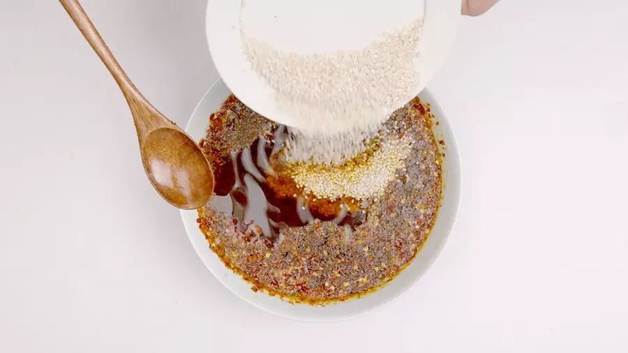 最后加入熟芝麻,增加香味,搅拌均匀即可。红油静置一晚,风味更佳;