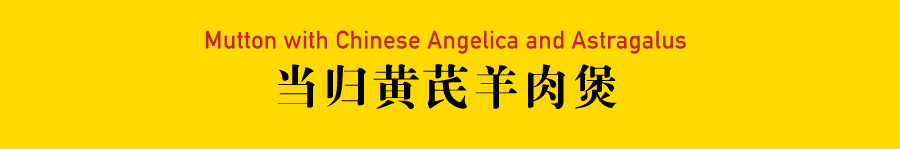 主料:羊肉500克,当归9克、黄精9克、黄芪15克、枸杞12克、甘草15克;