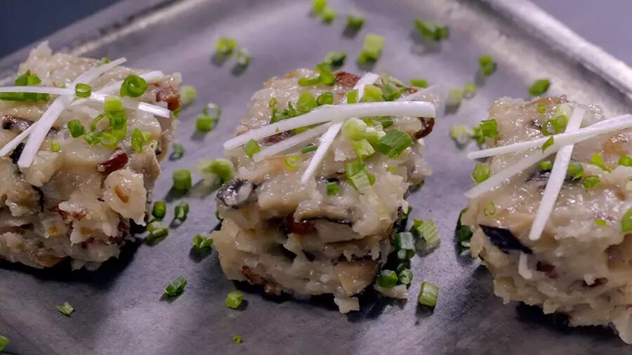 ► 萝卜糕传统的做法只用粘米粉,口感比较扎实,嘉宾刘佳发现加一些澄粉会让萝卜糕颜色略微透亮,更有嚼劲。因为常做给家人吃,她喜欢放很多腊肠、腊肉和冬菇,配料十足,特别有满足感。