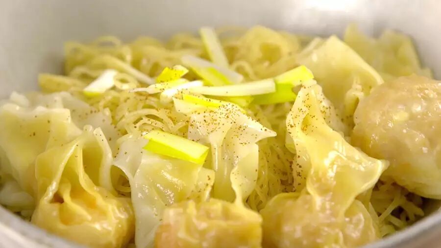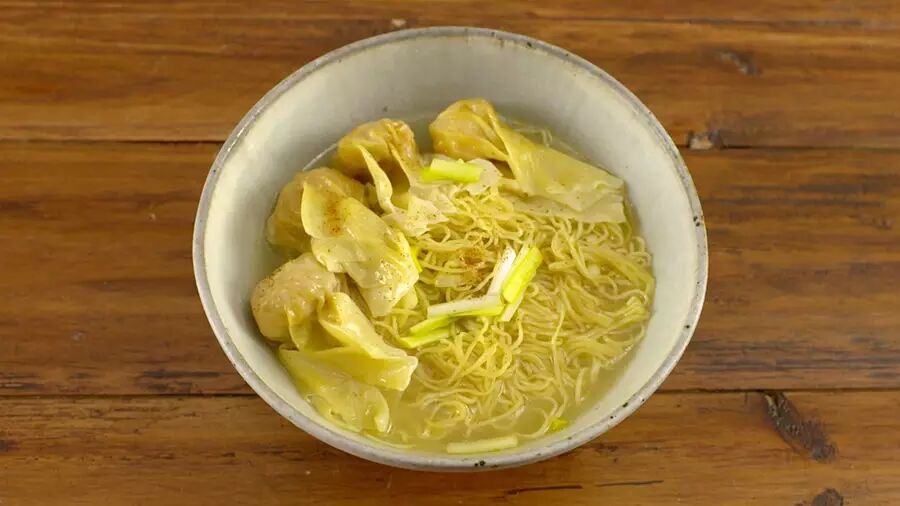 汤底需清澈香浓,其中大地鱼干是一味重点材料,而且在熬制高汤前要先烤出焦色。 云吞的馅料用肉与鲜虾,拌一点韭黄。面条选用碱水银丝面,更讲究一点用传统的竹升面。 吃的时候,要蘸些红醋,既能中和面的碱性,又让口味层次更丰富。