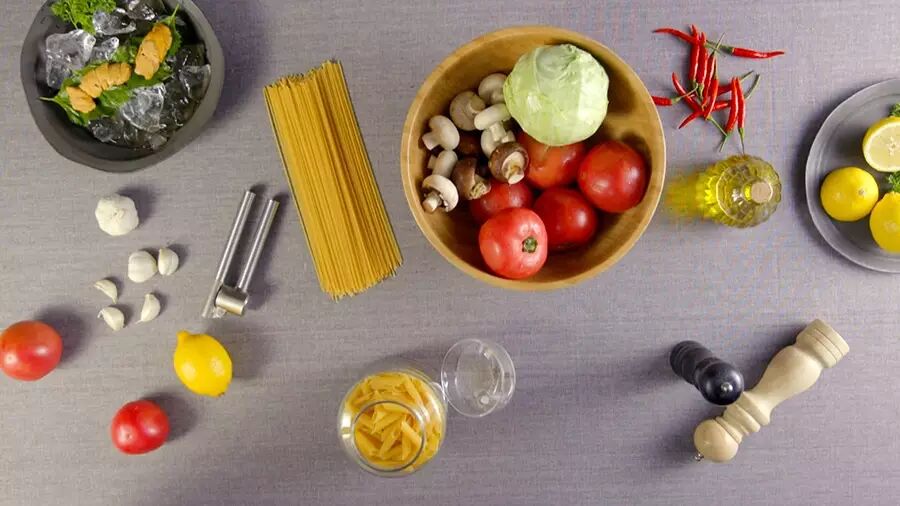 意面100克,生海胆40g,橄榄油40毫升,蒜头2瓣,辣椒1小根,番茄1个,盐、胡椒少许,柠檬皮少许,新鲜欧芹适量,冰块适量,凉水适量。