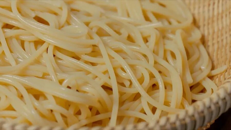 滚水煮8分钟后,把面捞出来,过一碗冰水。面用冰水激一下后,会变得非常有嚼劲;