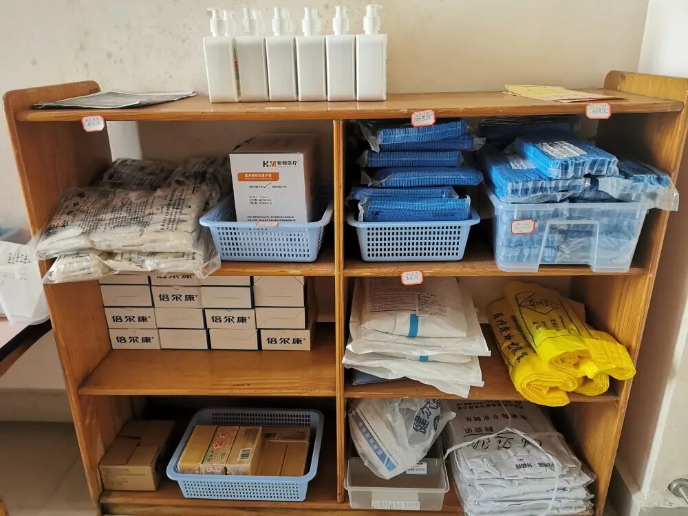 防控物资保障到位,是学校开学的必备条件。口罩、防护服、消毒物品……每一件物资,都整整齐齐的存放在物资库房。